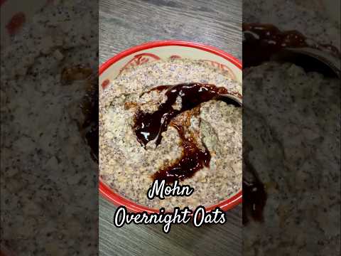 Overnight Oats im Germknödel Style 45 g Haferflocken* 1 kleine reife Banane 1 gehäufter TL Vanilleproteinpulver* 20 g gemahlener Blaumohn* ca. 180 ...